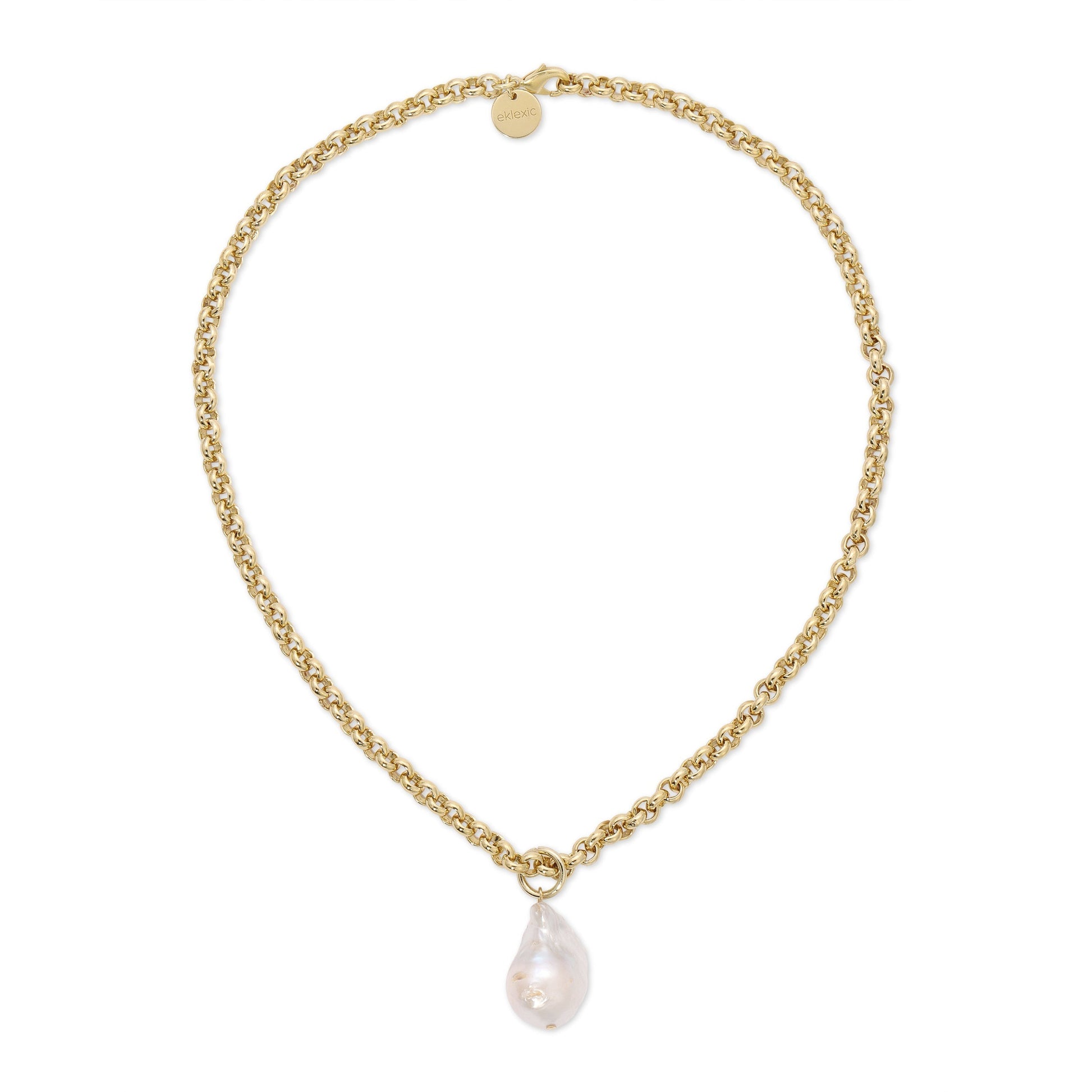 Micro Royal Chain With XL Baroque Pearl Pendant Necklace by Eklexic